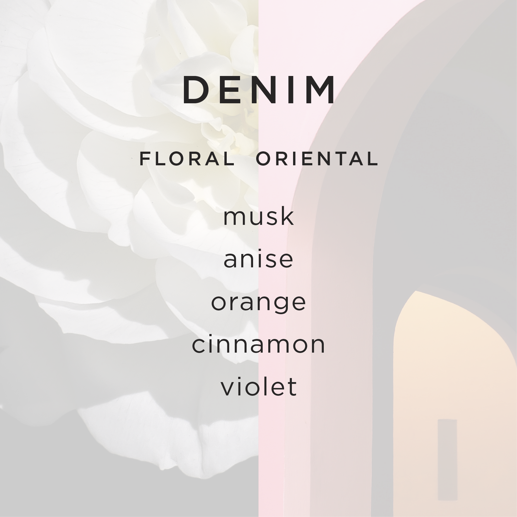 FIG WOOD / MUSK / GINGER / LIME ZEST / BERGAMOT / VANILLA / VIOLET / PEONY / LILY